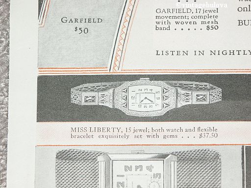 Very close, but the 1930 ads for a 'MISS AMERICA' show a Circular track on the Dial and Triangular shaped stones with symetrical sides.