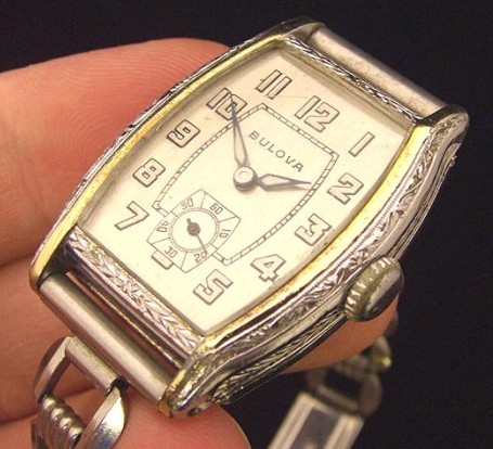 First one I have seen outside the ad. I thought that the watch didn't exist, just the ad. Restores my faith in Bulova. I hope they start coming out of the sock drawers, because I want one. Neat wrinkle is that the watch we thought was a Richard varient, is not, it's an unknown although I think it is one of the prettier tonneau Bulova produced in 1928-31. Note: The hands have been changed to the cathedral type.