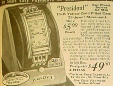 Very interesting. It appears Bulova changed the dial and movement on the 1936 President from a no seconds 6AE movement to a 7AP movement with a seconds dial but kept the same case configeration. I knew I had seen a President with a 7AP in the past ,so I had to question my example. I wonder if there are other variants in 1936 and 1937 President?