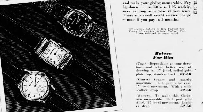 This ad looks like the case on this watch but no name unfortunately. The Daily News Sun, Dec. 12, 1943.