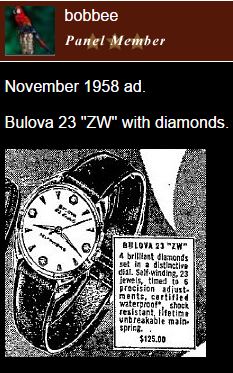 I think there was more than one Bulova 23 w/ diamond dial. Don't remember if we had ads for them, but I think they are in the price lists.
