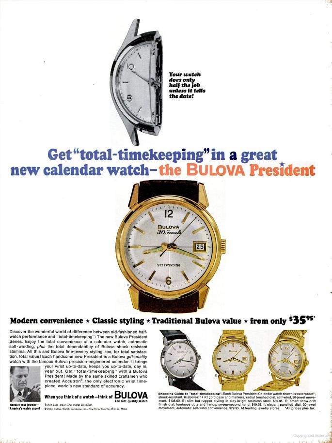 So, one can assume from this that the 30 Jewel 'DATE KING' was re-badged to 'PRESIDENT' in 1964.